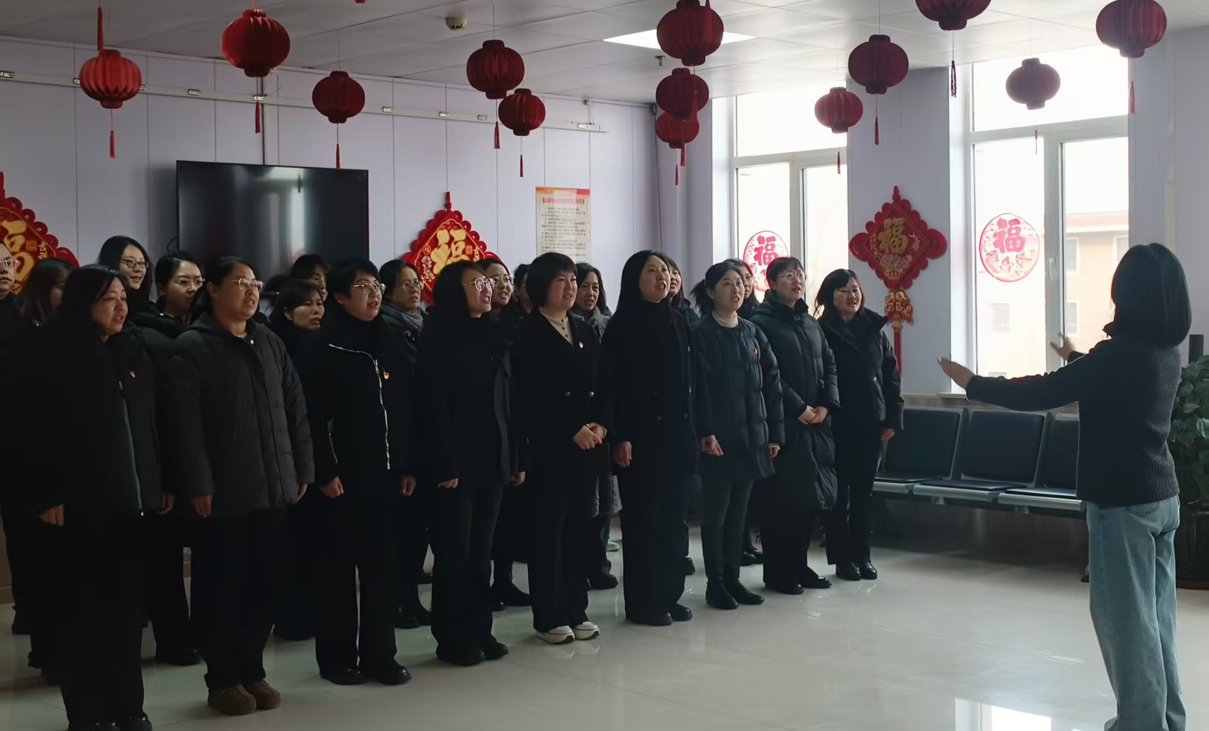团员学生代表们精彩的表演之后,党员教师们也拿出全部的诚意,为老人们献出优美的赞歌。